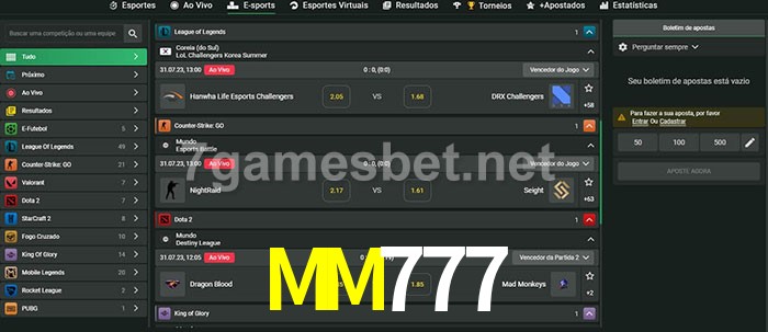 A aposta MM777 oferece aos jogadores a experiência mais conveniente de apostas em eSports!